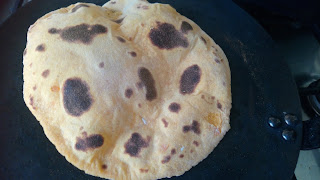 - Meanwhile heat the non-stick tawa over medium flame, and place paratha on the tawa and cook it until you begin to see bubbles,then flip it.